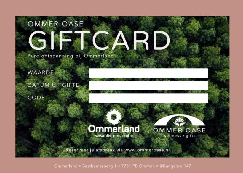 Bij Ommer Oase zijn cadeaubonnen en diverse cadeauartikelen te verkrijgen op het gebied van verzorging, ontspanning en inspiratie. Verras iemand met een ontspannende behandeling.
